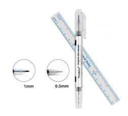 Pennarello di precisione, con righello Pennarello Sterile e Monouso. Dotato di due punte, una da 1mm, l'altra da 0.5mm