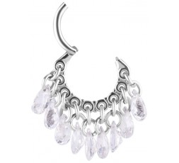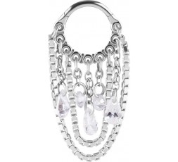 SS 316 CLICKER WITH JEWELLED DANGLE CHAINS 1,2x8mm WH